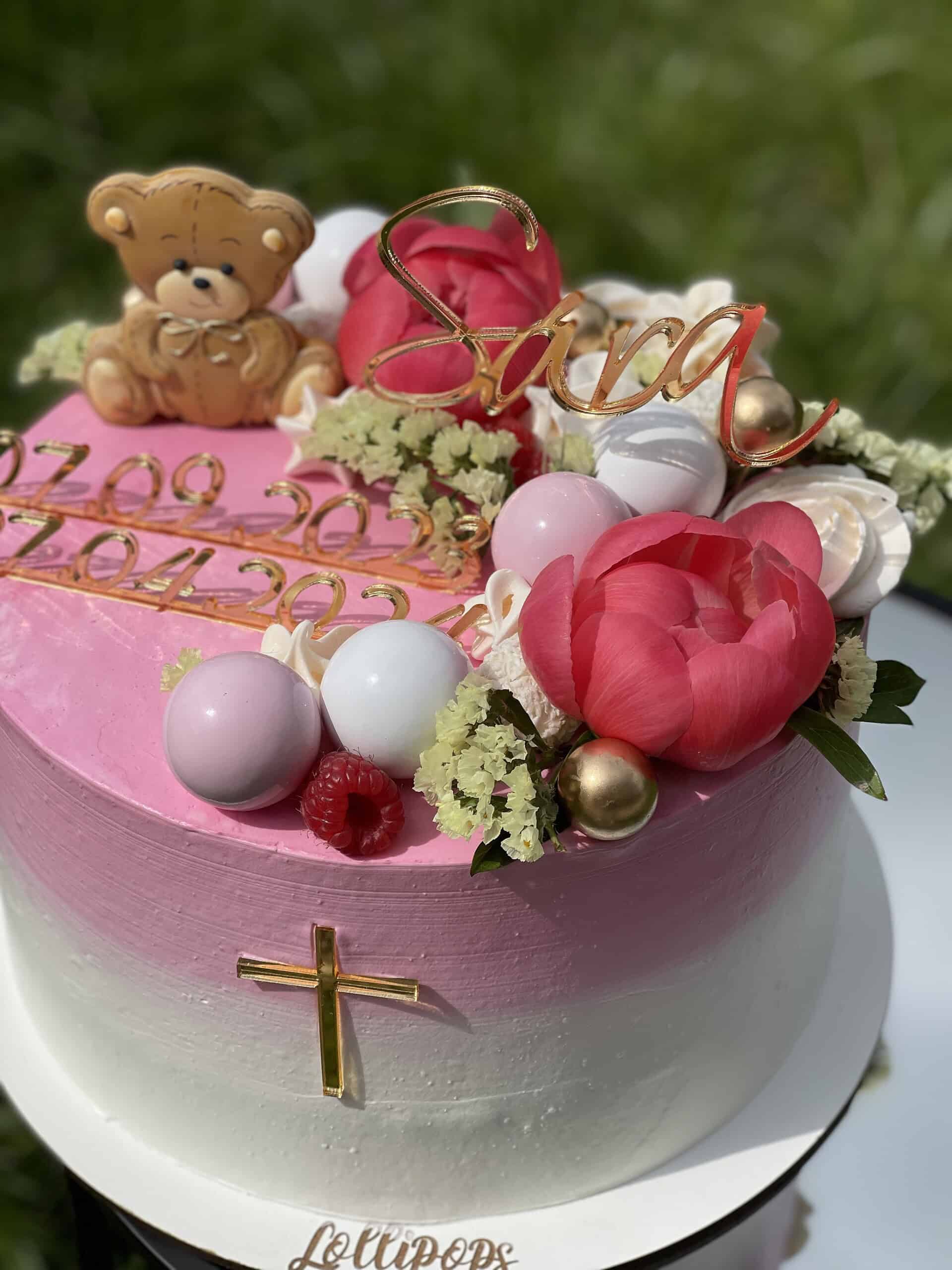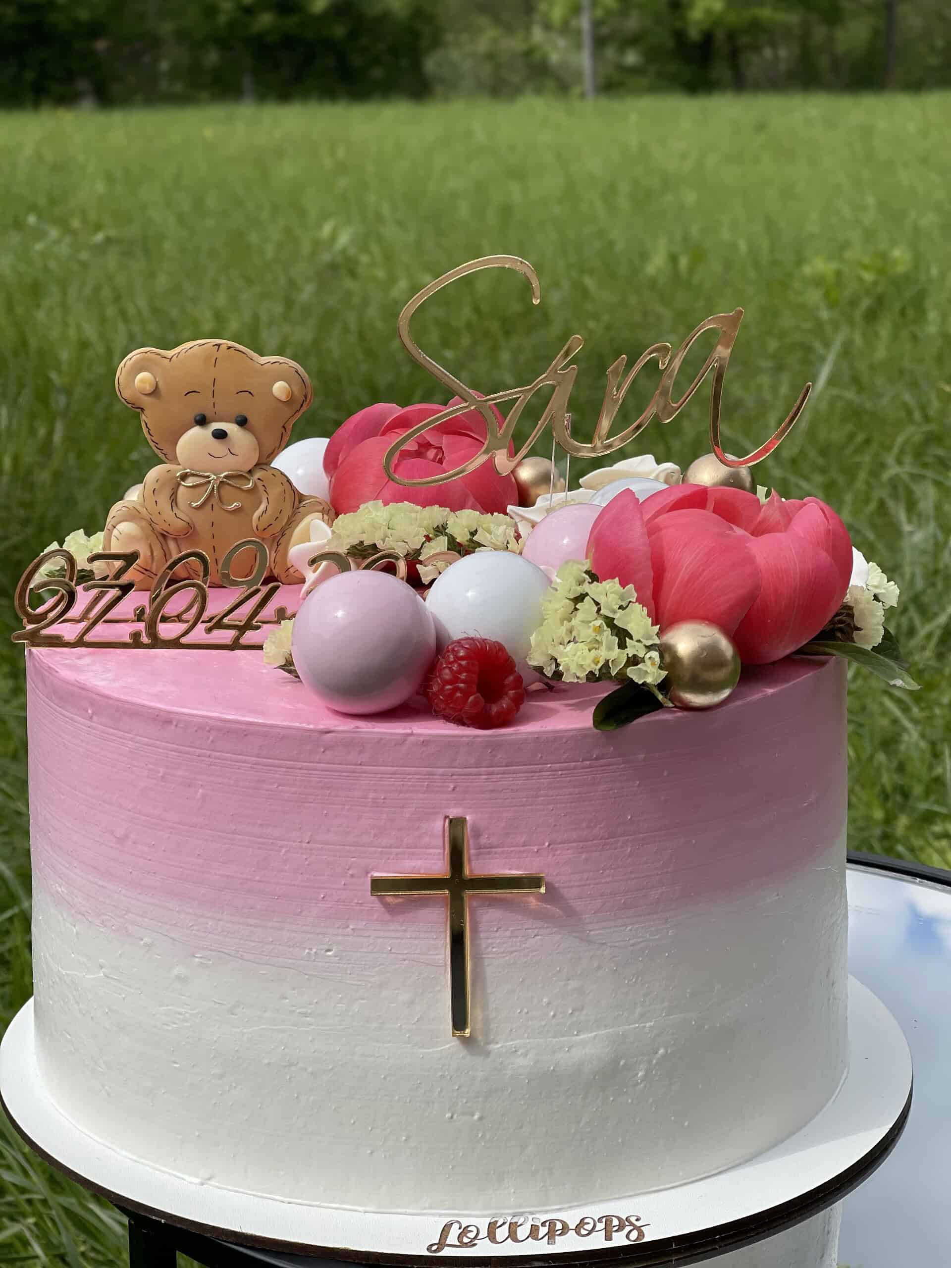 Torta vhodná na cirkevné sviatosti – krst, prijímanie, birmovku. . Objednávku je možné spísať aj osobne v niektorej z našich prevádzok Ružovej cukrárne.